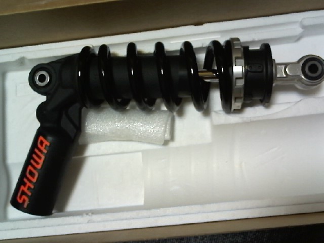 体重が軽い(50kg無いです・・・)ほうなのでオーリンズの初期のセッティングではまったくもって沈まなかったです。初めにまたがったとき「かたっ!!」って思いました。今はとりあえずコンプレッション(圧側)を最弱にリバウンド(伸び側)は少し弱めにしてます。